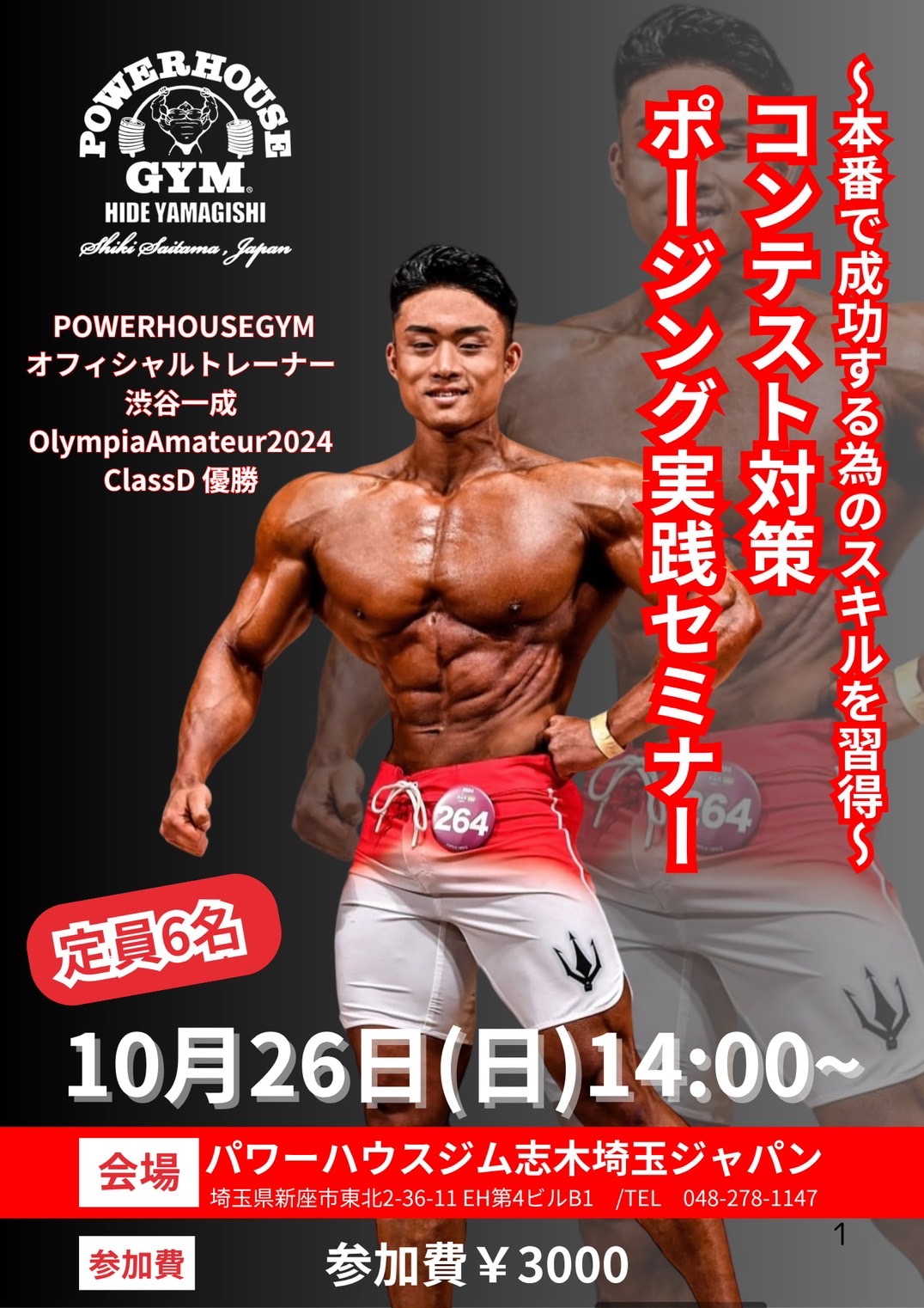 パワーハウスジムオフィシャルトレーナー「渋谷一成」によるポージングセミナーを開催🔥